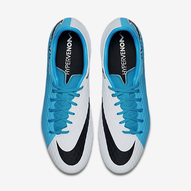 Detalles del producto:Las botas de fútbol para terreno firme Nike Hypervenom Phelon 3 para hombre cuentan con un ajuste anatómico y una gran zona de impacto para ofrecer una agilidad sin igual y un mejor control del balón en campos de hierba corta.Cordones asimétricos El sistema de lazada descentrado amplía la zona de impacto para ofrecer un mejor control del balón.Parte superior texturizada La parte superior similar a la piel cuenta con una microtextura geométrica para ofrecer un toque mejorado.Un fino revestimiento une la película de plástico a la malla ligera para ofrecer estabilidad lateral de máxima firmeza.Más información:Sku:852556-528Tipo:Nike hypervenom phantom 3Color:azul foto/blanco/azul cloro/negro